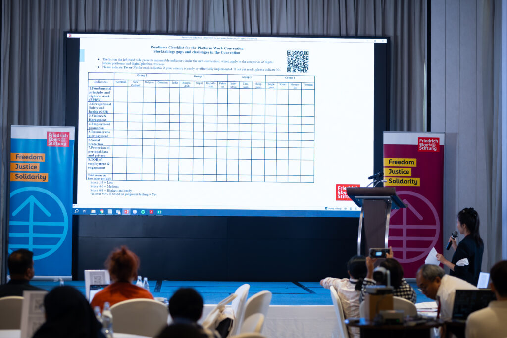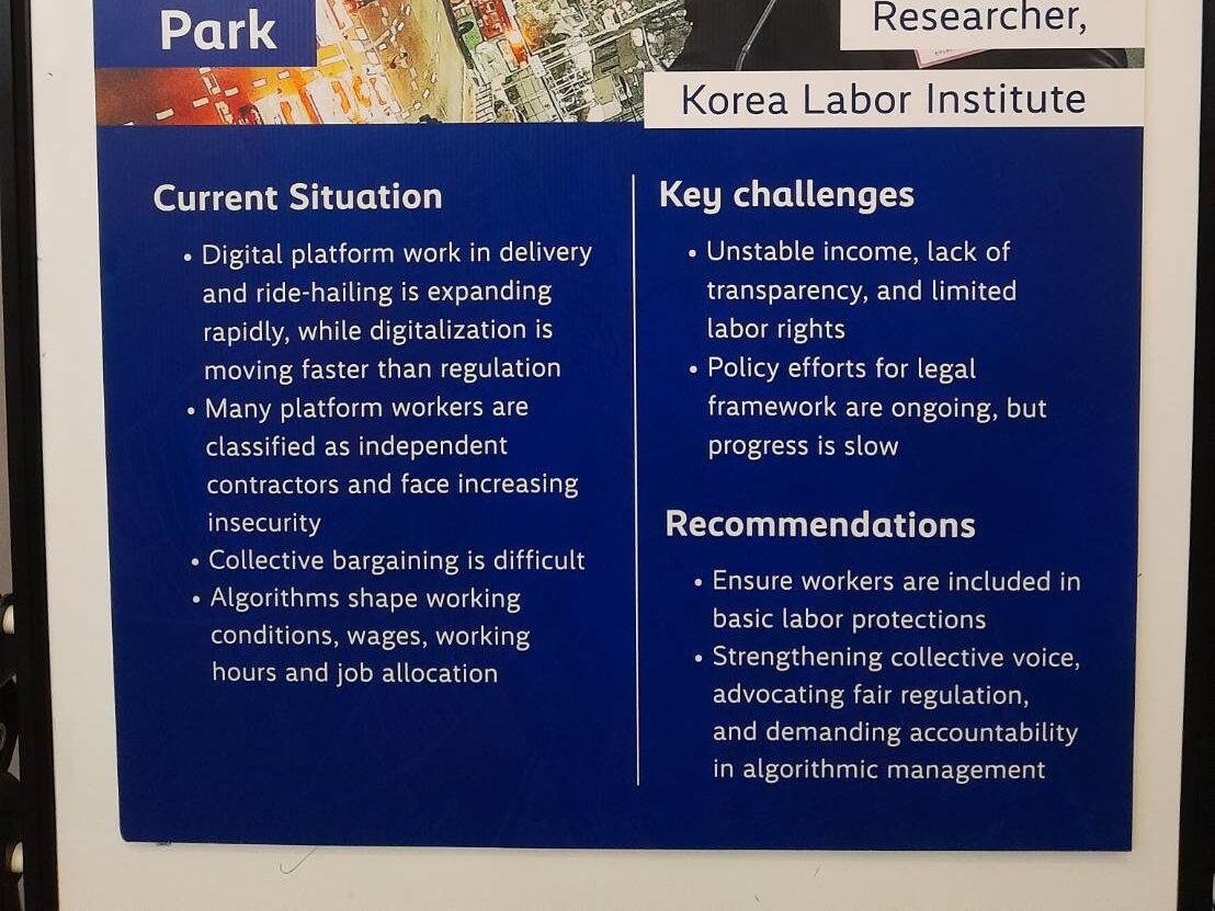 JELI co-facilitated the session “Stocktaking: gaps and challenges in the Convention” alongside Mr. Pong-Sul Ahn from the International Labour Organization (ILO) Regional Office for Asia and the Pacific. The conference reviewed key developments, gaps, and emerging challenges in shaping standards for the platform economy.