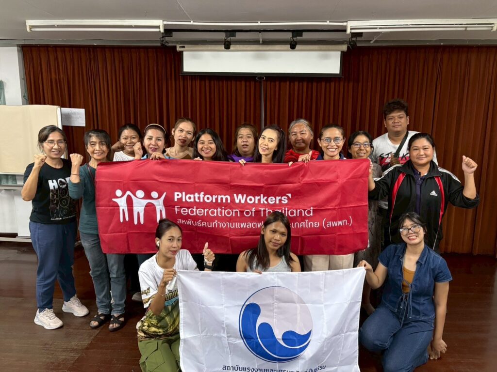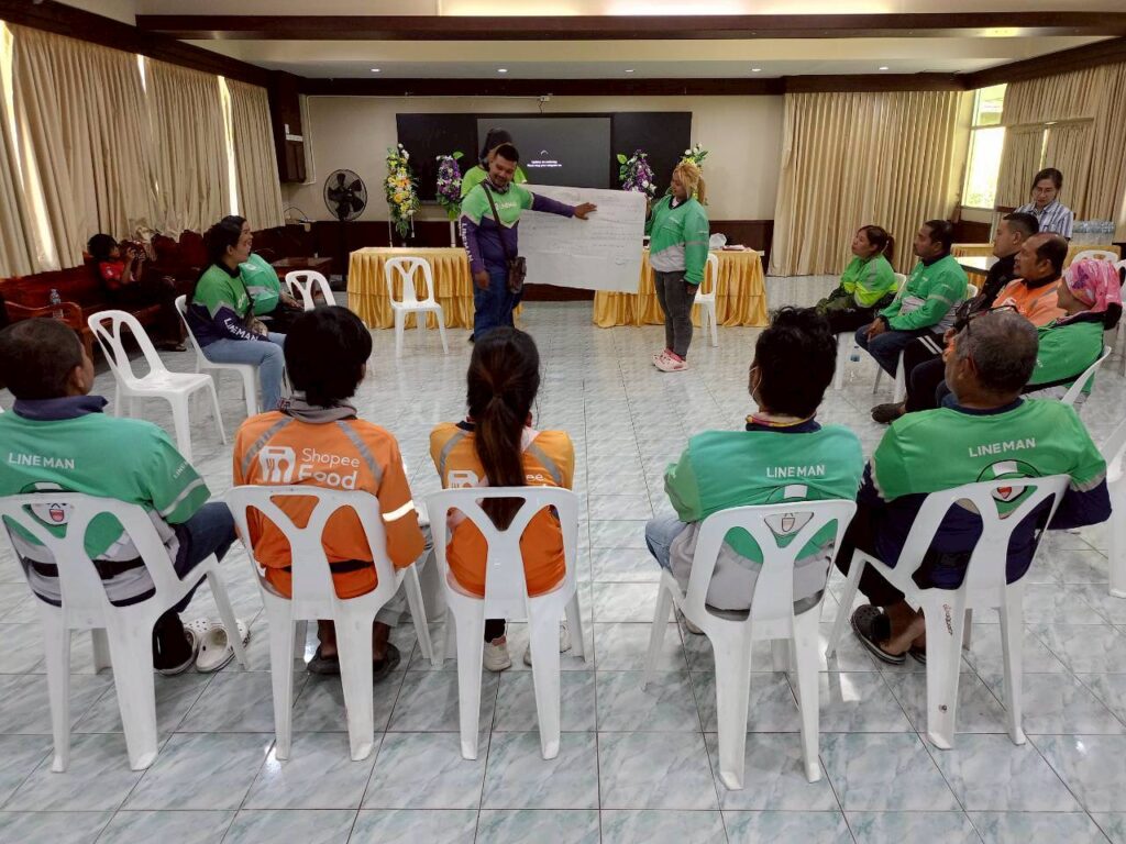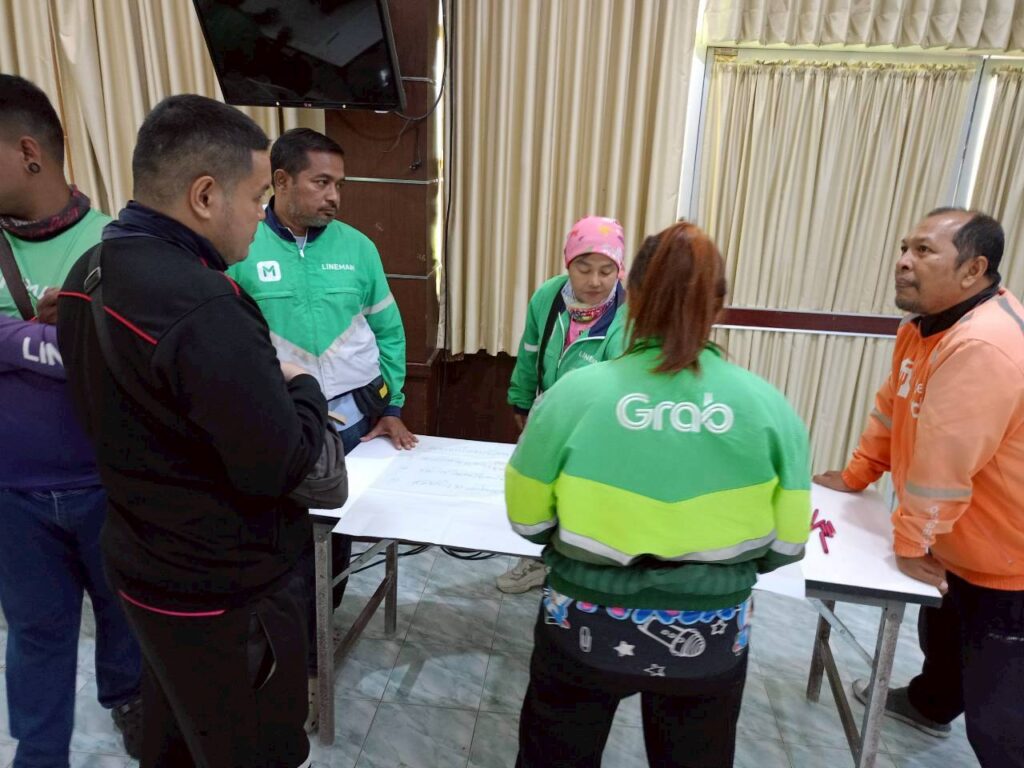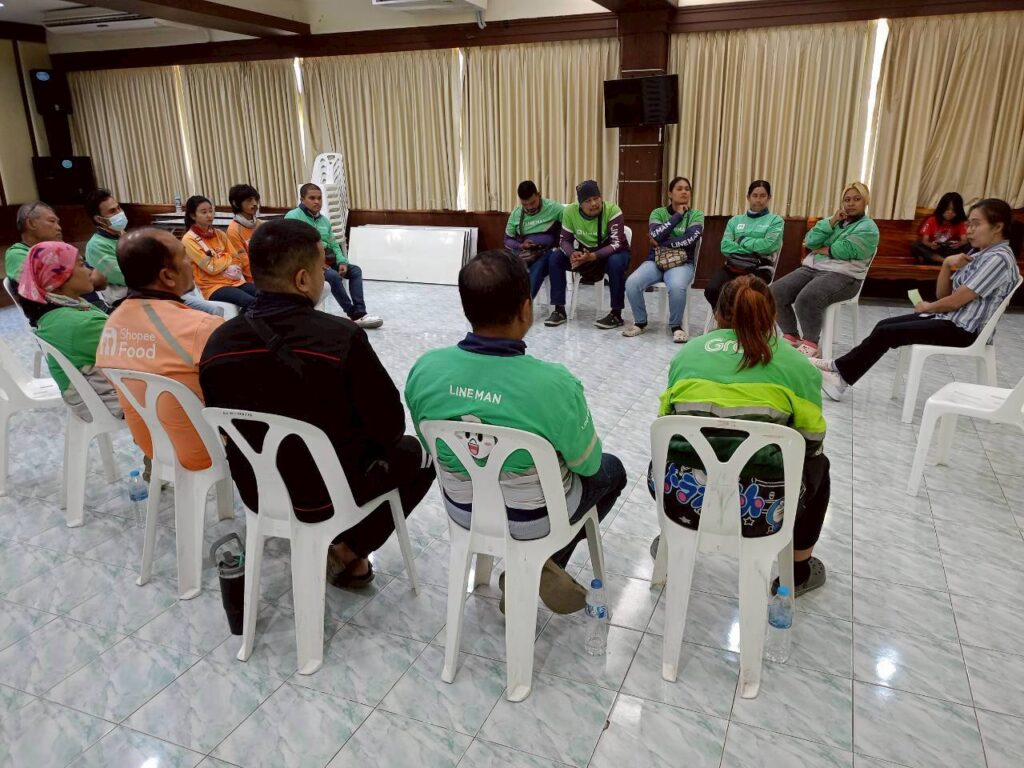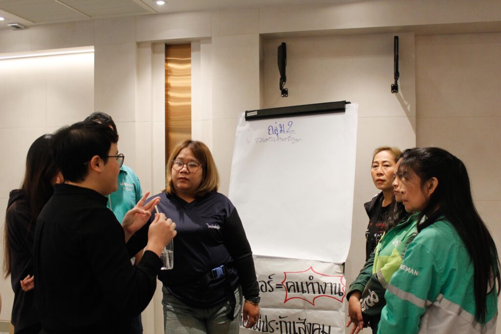 A key focus of the meeting was exploring ways to strengthen connections between groups to advance shared issues, both through collective campaigns and broader network-based organising. Participants also discussed the role of the Platform Workers Federation of Thailand (PWOT) as a central platform to link different groups, strengthen the movement, and build collective representation capable of advancing workers’ issues at both national and international levels.