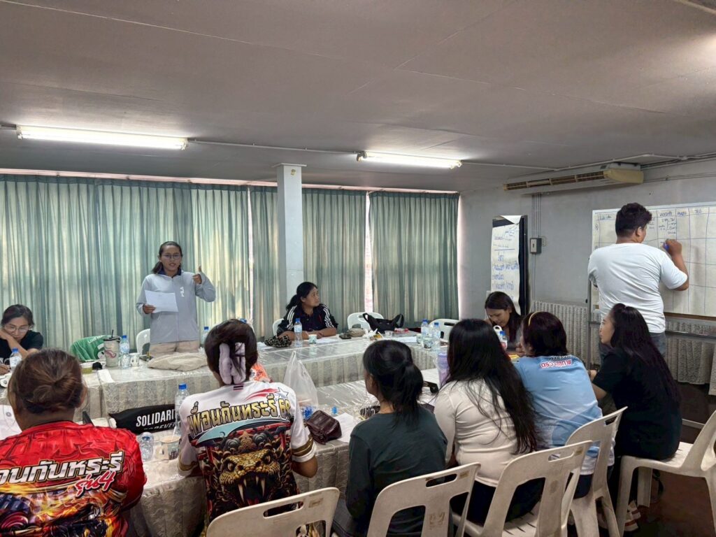 21 April 2026, the Just Economy and Labor Institute (JELI) met with women labour leaders to follow up on earlier discussions on organising held on 29 March 2026. This continued engagement created a space for workers from different groups and provinces, including Krabi, Saraburi, and Bangkok, as well as union networks, to reconnect, exchange updates, and share progress from their respective areas. Each group reflected on its own organisational structure, identifying strengths and areas for improvement, while learning from one another’s experiences.