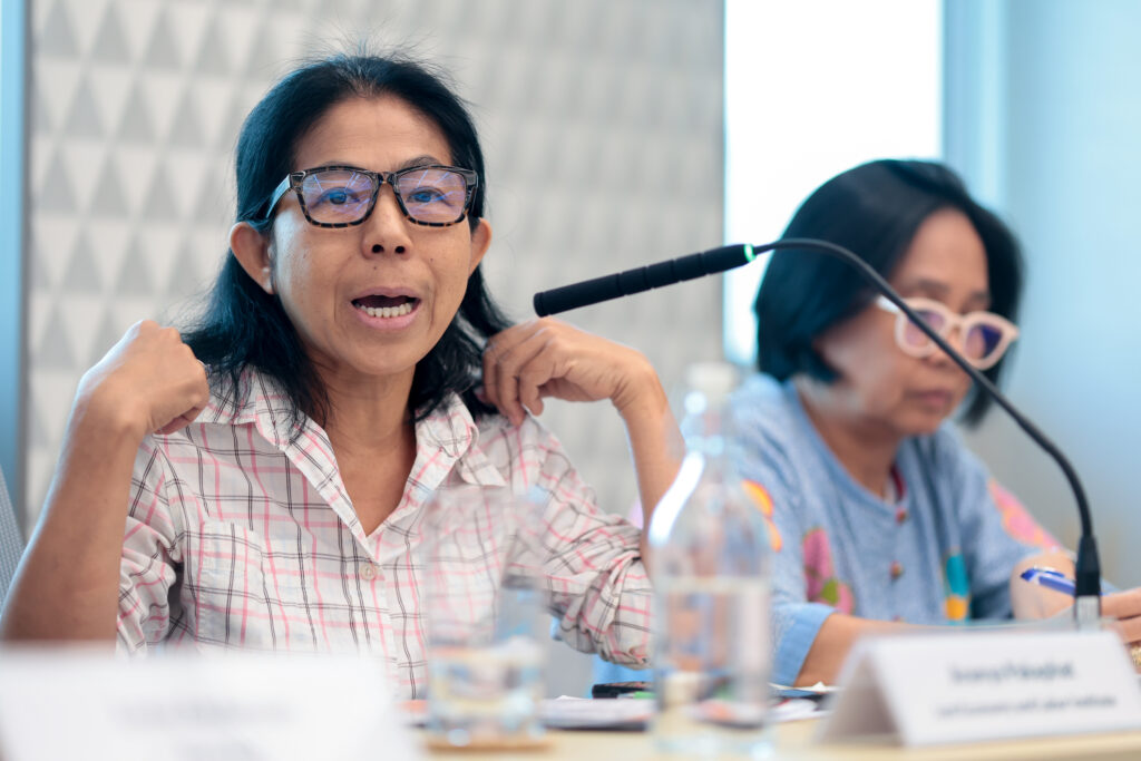 Aranya Pakaphat, representing JELI, joined the discussion panel titled “Finance & Climate Justice: Investment, Changing Employment, Workers’ Rights, and Social Protection” alongside Sawit Kaewwan from the Thai Labour Solidarity Federation and Nitirut Sapsomboon from WeFair.